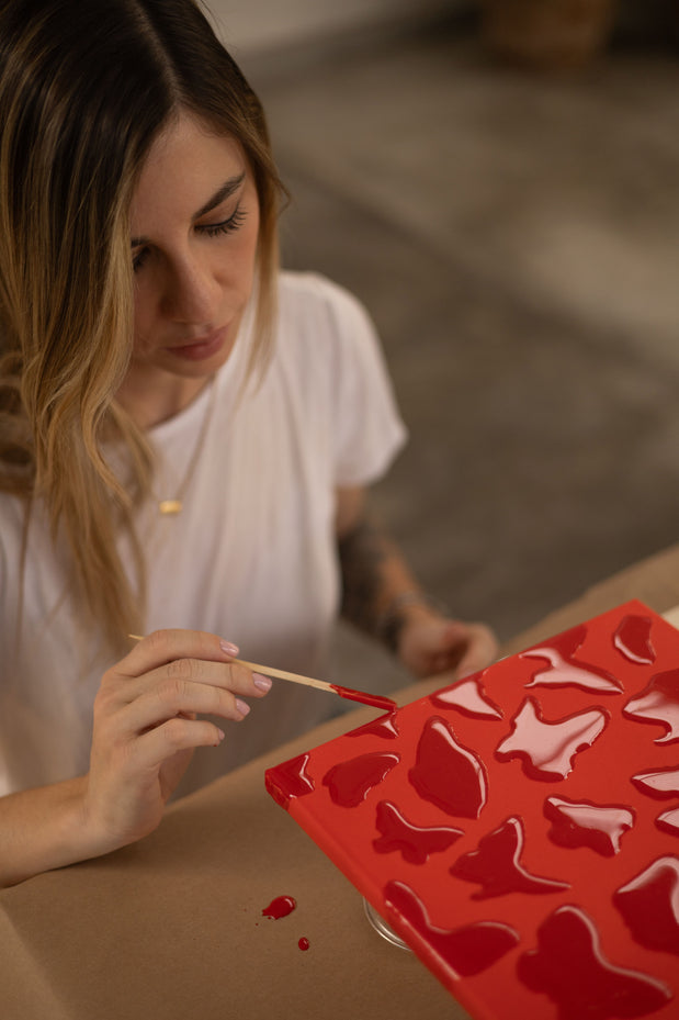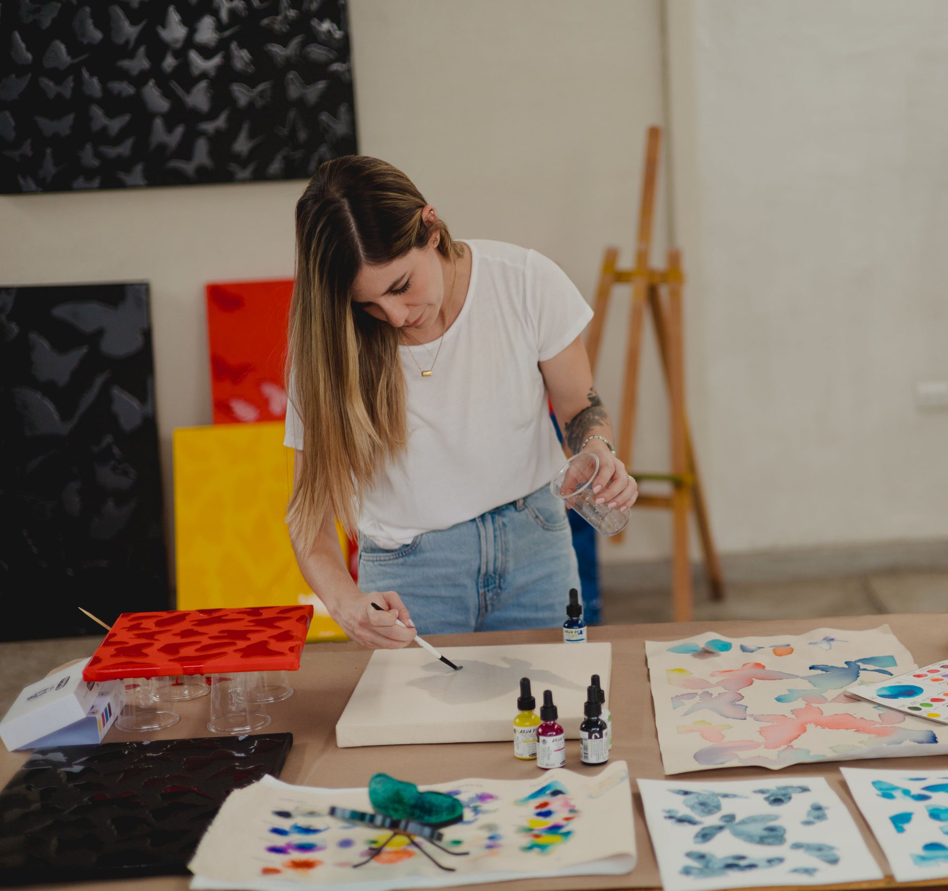The resin will reflect the light and colors in the space, the artwork will transform depending on the time of the day creating an ever-changing visual experience shaped by natural light.