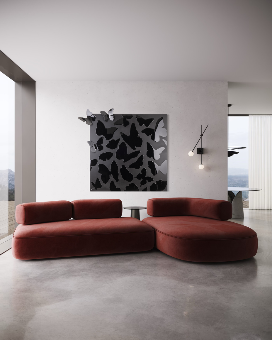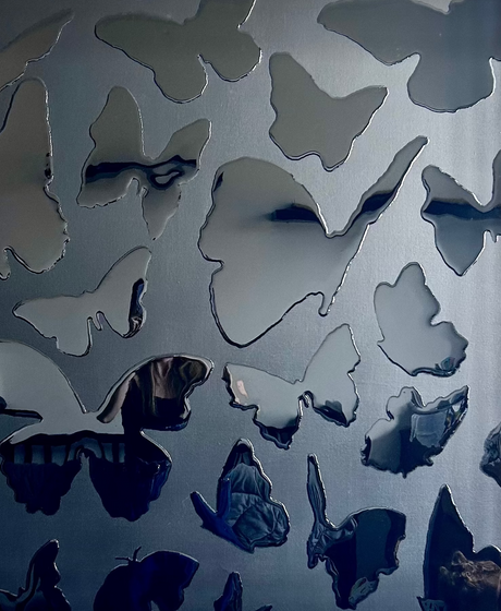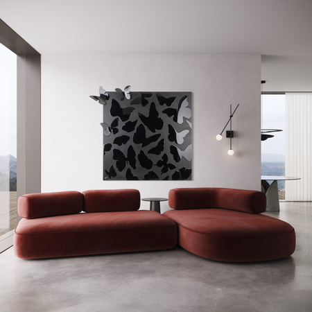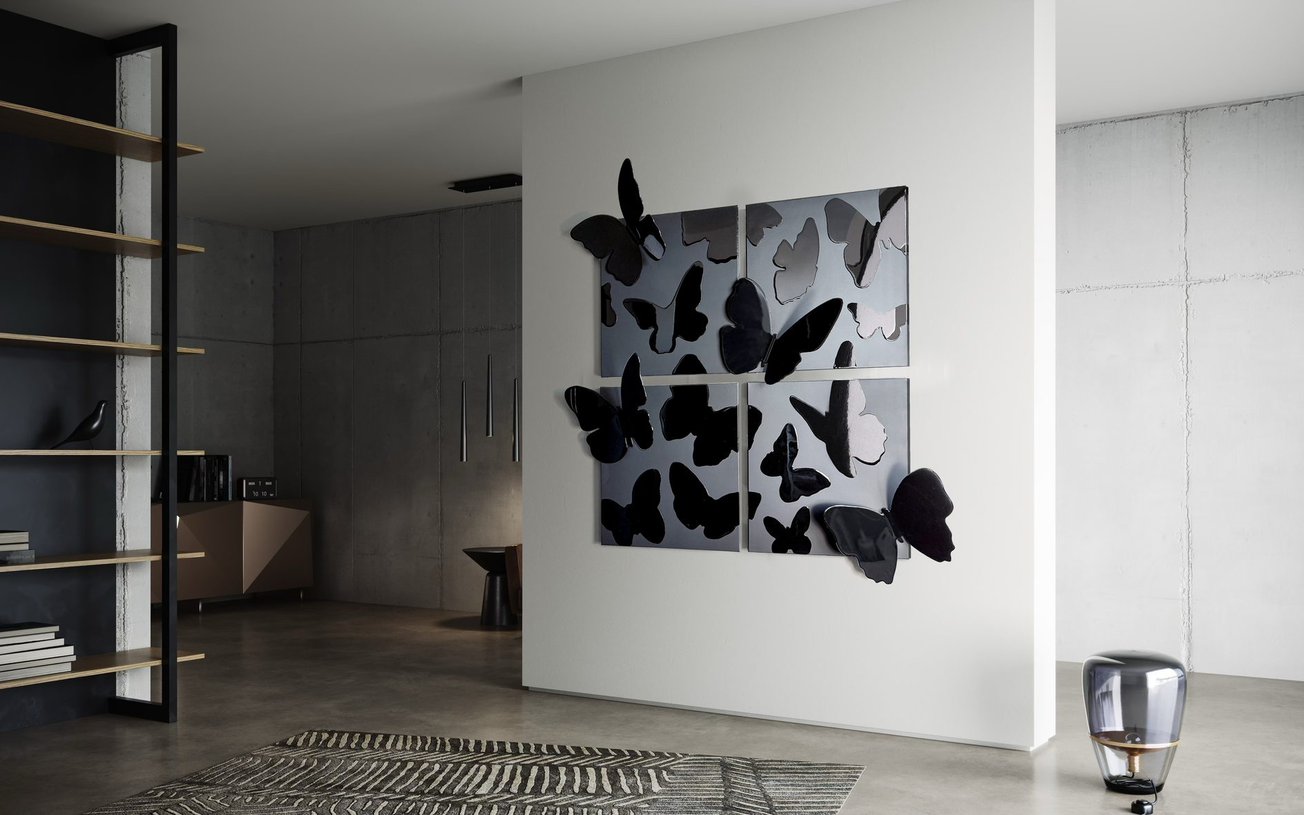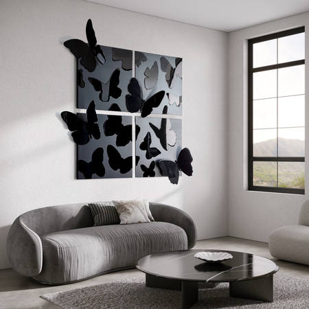 The elevated butterflies can be gently moved, allowing the composition to shift and transform.